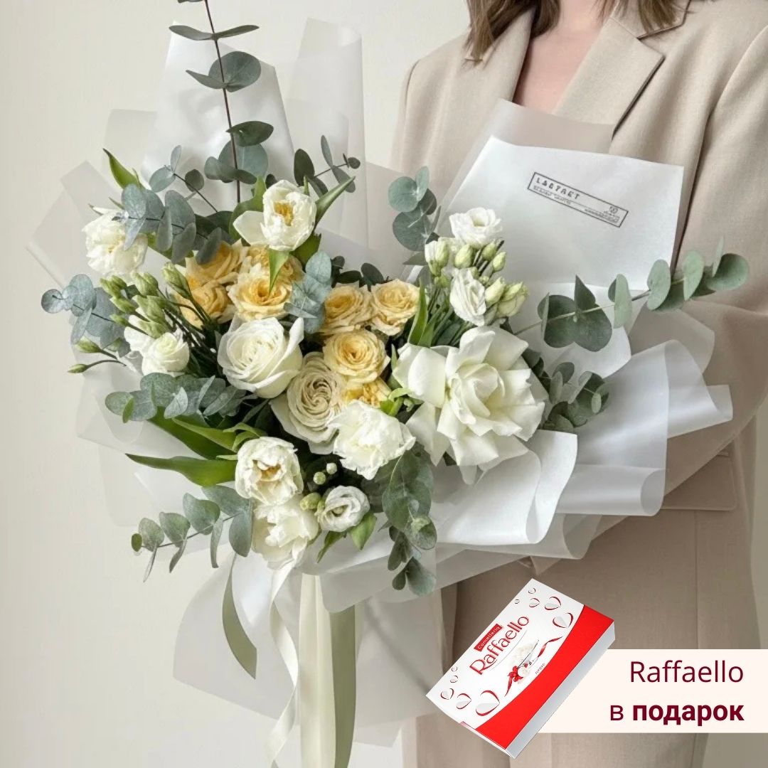 Букет сборный с белыми тюльпанами